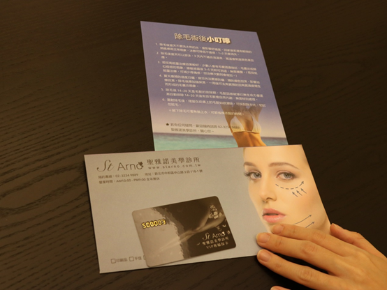 所以在永久除毛的選擇上,我會覺得像聖雅諾這種 " 溫和永久性 " 的永久除毛療程會比較好,且還有終生保證卡的保證喔。如果北部想要找無痛除毛課程的人,