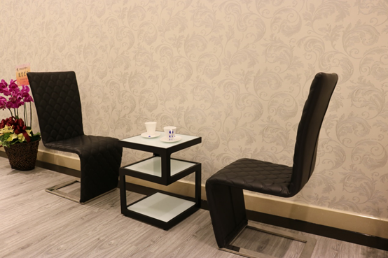 長長的走道上每幾步就有藝術性的桌椅讓客人休息等待,所以我決定我來做療程的時候,老公就在外面等吧
